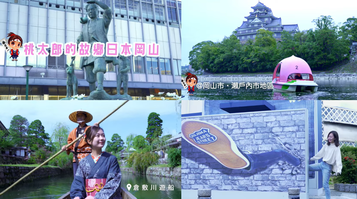 - 岡山県は、平成 28 年 7 月の岡山桃太郎空港~台湾・桃園国際空港間の直行便の就航を契機にインバウンド施策を強化してきた。今回は、台湾での岡山県の認知度のさらなる向上と誘客拡大を図るため、観光素材を活用した動画、写真等によるプロモーションを展開した。コロナ禍により台湾からは叶わず、東京在住の台湾新聞の記者を招いて岡山の桃太郎(桃)にちなんだ観光スポットを取材。その素材をもとに現地メディア発信用のリリースを作成。同時に、岡山県の台湾向け観光 PR 動画も制作。また台湾のインフルエンサー「イリィ」氏(Instagram フォロワー97.5 万人)を起用し、動画、取材素材、お土産を提供し、岡山の魅力を SNS で発信してもらう。台湾では 30 件以上のパブリシティとイリィ氏の SNS投稿動画 1 万回再生等により、多くの台湾の方に岡山県の情報をリーチさせることができた。